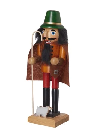 mit vielen kleinen Details wie kleinem Schäfchen vor den Füßen, Schäferstab und Umhängetasche
