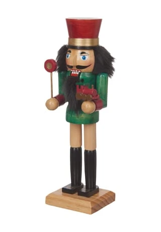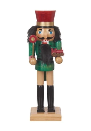 Nussknacker in Schaffner-Kleidung mit kleiner Lok und Signalkelle in den Händen