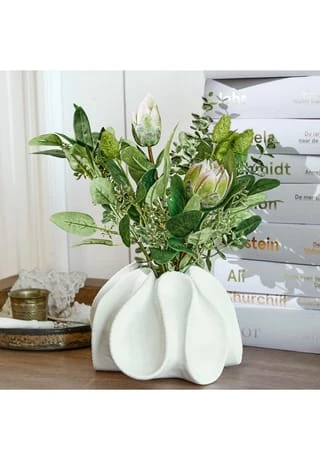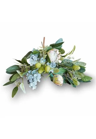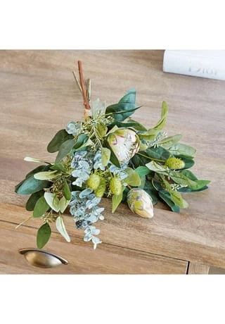 Wie ein frisch gebundenes Bouquet. Weiche Blüten und Blätter. Absolut naturnahe Nachbildung und nie welkend. Hiermit genießen Sie in jeder Saison den Anblick frischer Blüten und Eukalyptusblätter – denn von einem echten Strauß ist dieses Kunstwerk kaum zu unterscheiden. Sie sparen es sich dabei zudem, immer wieder neue Blumen kaufen zu müssen. Der kunstvoll drapierte Strauß mit biegsamen Zweigen zaubert natürlichen Charme in jedes Ambiente und passt zum Beispiel sehr gut zum Landhaus-Stil. Suchen Sie einfach eine hübsche Vase für ihn aus, und schon entsteht ein gekonnter Tischschmuck. Auch auf einer Anrichte versprüht das edle Accessoire seinen Charme, und das in Wohn- wie Schlafzimmer oder auch Küche und Bad.