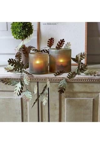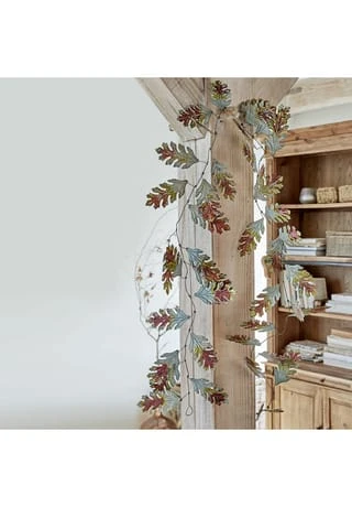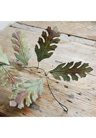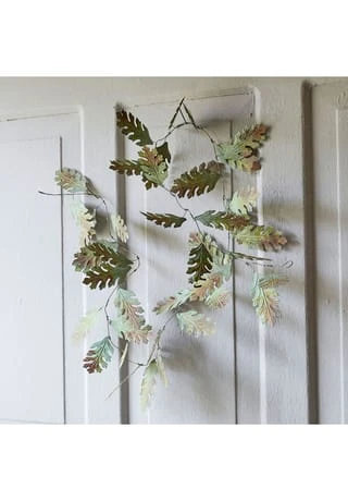 Naturnahe Eichenblatt-Optik aus Eisen. Reizvolles Antik-Finish, das an Herbstlaub erinnert. Biegsamer Draht für kreatives Arrangieren. Die eisernen Blätter sind ausgesprochen detailreich gearbeitet. Ein großer Vorteil: Sie welken niemals und bleiben immer schön, sodass Sie ein sehr langlebiges Accessoire haben. Das Antik-Finish erinnert an Herbstblätter, welche sich langsam verfärben – ein schöner Effekt. So zaubert diese lange Girlande den Wald zu Ihnen. Sie lässt sich völlig frei und ganz nach Wunsch dekorieren – ob an einem Wandhaken befestigt, für eine Kaminkonsole oder am Fenster. Das hübsche Design schmeichelt jedem Interieur und macht sich besonders gut zum Landhaus-Stil. Hiermit gewinnen Ihre Räume eine besondere Note, ob Küche oder Wohnzimmer.