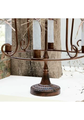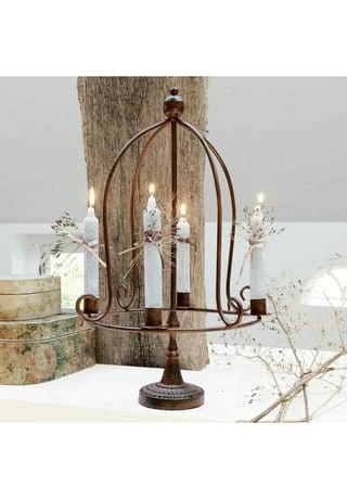 Französischer Look mit rostbraunem Eisen. Für Kerzen und als Deko geeignet. Schöne Gestaltung des Fußes mit unterschiedlichen Strukturen. Liebhaber des französischen Landhausstils mit einem Faible für historische Looks werden diesen Kerzenhalter mit seinem bezaubernden Design zu schätzen wissen. Die stilvolle Optik begeistert und lädt zum Träumen ein bei entspannenden Stunden im stimmungsvollen Kerzenlicht. Als Material ist rostbrauner Stahl im Einsatz, der Fuß hat eine feine Noppen-Struktur. Ein wunderbares Schmuckstück, das wir ohne Kerzen zu Ihnen liefern, sodass Sie selbst kreativ werden können.