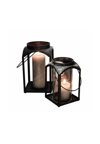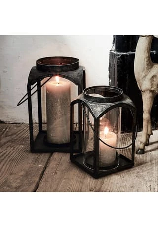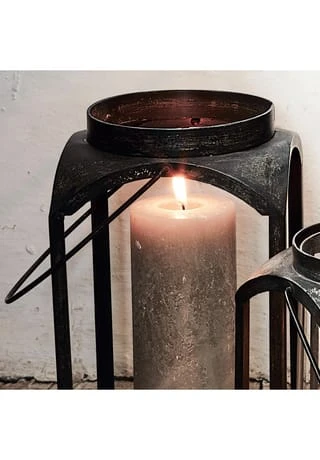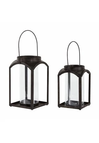 Robustes Eisen mit starkem Antik-Finish. Orientalische Anmutung durch abgerundete Oberseiten. Praktischer Glaseinsatz sorgt für Windschutz. Das elegante Laternen-Duo vereint windschützendes Glas mit robustem Eisen. Besonders schön: das aufwendige Antik-Finish, das den charmanten Vintage-Look zur Geltung bringt. Hübsche Details unterstreichen die nostalgische Schönheit dieser Lichtbringer, die zum Träumen einladen. Freuen Sie sich am leicht orientalischen Stil der Schmuckstücke, der durch die abgerundeten Oberseiten erzeugt wird. Verzaubern Sie Ihr Zuhause mit diesen faszinierenden Laternen und lassen Sie eine stimmungsvolle Atmosphäre entstehen – drinnen oder natürlich auch auf der Terrasse oder dem Balkon. Da keinerlei Deko im Lieferumfang enthalten ist, können Sie das Duo selbst mit Kerzen und Accessoires schmücken.