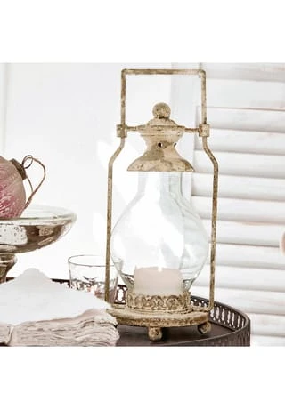Das authentische Antik-Design wird von einem handgearbeiteten Finish perfekt abgerundet. Das Design begeistert mit feinen, handwerklich gearbeiteten Details. Perfekt für Kerzen oder LED-Lichter. Das Glas lässt sich kinderleicht herausnehmen. Diese Laterne wirkt wie ein wertvoller Dachbodenfund, der schon viele Jahrzehnte überdauert hat. Das handgearbeitete Finish und ein zeitlos klassisches Design verleihen dem hübschen Lichtspender seinen authentischen Vintage-Charakter. Charmante Altersspuren und feine Unregelmäßigkeiten sorgen zudem für echten Unikat-Charakter. Der gläserne Windschutz lässt sich selbstverständlich entnehmen, damit sie bequem eine Kerze oder ein LED-Licht platzieren können.