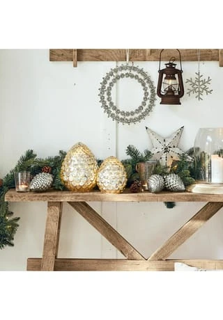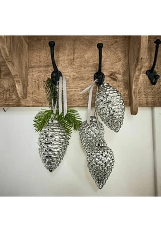 Hübsche Deko in Tannenzapfenoptik. Edles Bauernsilber-Finish. Zum Aufhängen an Zweigen oder am Christbaum. Ob an den grünen Zweigen Ihres Christbaums, am Adventskranz oder an Kiefernzweigen auf Ihrer weihnachtlichen Festtafel: Die hübschen Anhänger in Tannenzapfenoptik machen durch ihr bezauberndes Bauernsilber-Finish Weihnachten noch stilvoller und schöner. Lassen Sie bei der kreativen Gestaltung Ihres Adventambientes Ihren Ideen freien Lauf – auf die wundervollen Zapfen werden Sie dabei sicher nie mehr verzichten wollen, wenn Sie Ihre Räume mit einer weihnachtlichen Atmosphäre erfüllen.