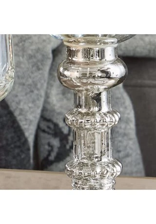 Der Fuß aus Bauernsilber sorgt für elegantes Flair. Im Set sind zwei harmonisch aufeinander abgestimmte Größen enthalten. Die schöne Pokalform ist mundgeblasen. Dieses schicke Set beinhaltet zwei stilvolle Windlichter, die Tafel oder Kaminsims zum Hingucker machen. Der obere Teil ist aus Glas, der untere Bereich schimmert silbern dank des verwendeten Bauernsilbers. Die edel anmutende Form unterstreich das klassisch elegante Design.